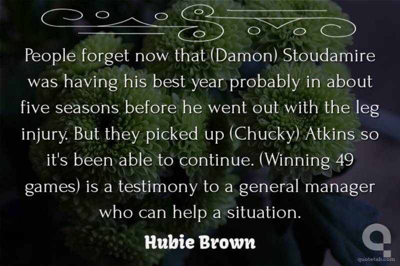 People forget now that (Damon) Stoudamire was having his best year probably in about five seasons before he went out with the leg injury. But they picked up (Chucky) Atkins so it's been able to continue. (Winning 49 games) is a testimony to a general manager who can help a situation.