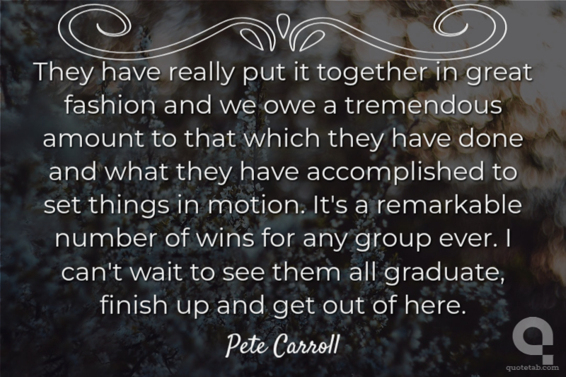They have really put it together in great fashion and we owe a tremendous amount to that which they have done and what they have accomplished to set things in motion. It's a remarkable number of wins for any group ever. I can't wait to see them all graduate, finish up and get out of here.