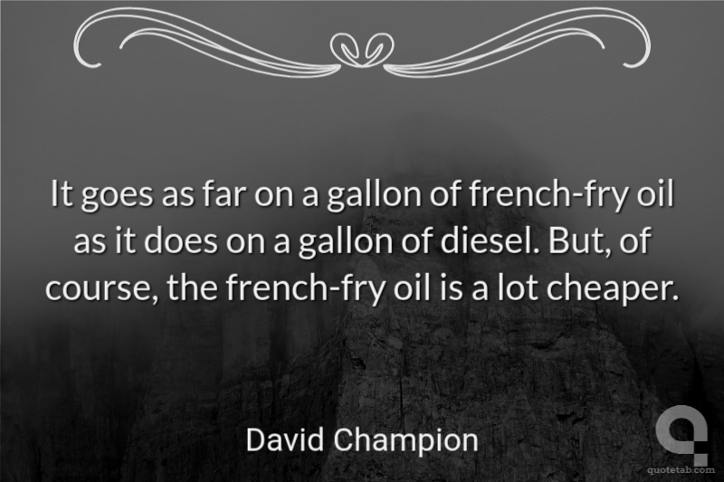 It goes as far on a gallon of french-fry oil as it does on a gallon of diesel. But, of course, the french-fry oil is a lot cheaper.