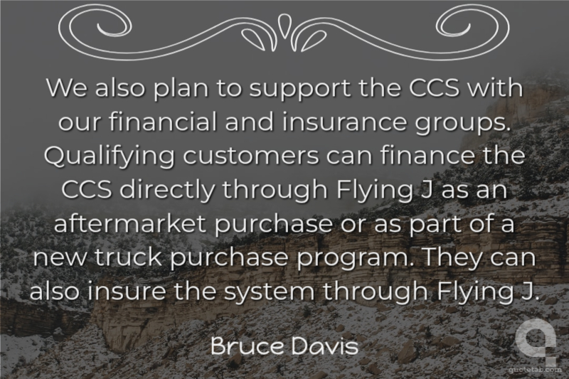 We also plan to support the CCS with our financial and insurance groups. Qualifying customers can finance the CCS directly through Flying J as an aftermarket purchase or as part of a new truck purchase program. They can also insure the system through Flying J.