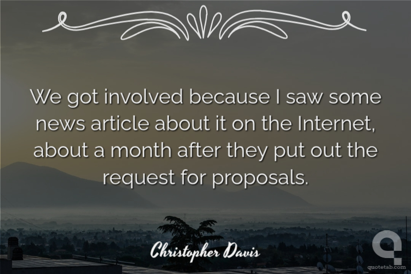 We got involved because I saw some news article about it on the Internet, about a month after they put out the request for proposals.
