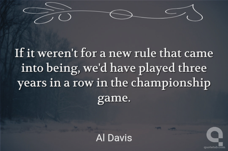 If it weren't for a new rule that came into being, we'd have played three years in a row in the championship game.