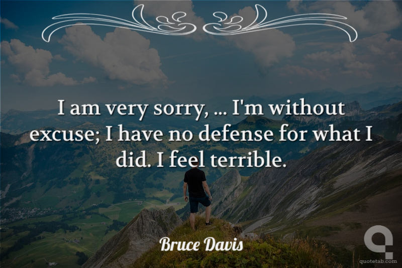 I am very sorry, ... I'm without excuse; I have no defense for what I did. I feel terrible.