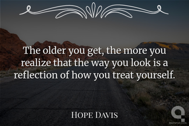 The older you get, the more you realize that the way you look is a reflection of how you treat yourself.