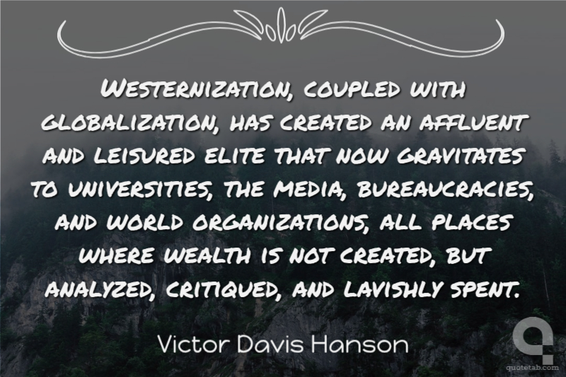 Westernization, coupled with globalization, has created an affluent and leisured elite that now gravitates to universities, the media, bureaucracies, and world organizations, all places where wealth is not created, but analyzed, critiqued, and lavishly spent.