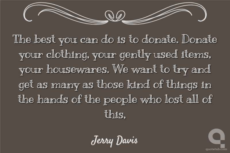 The best you can do is to donate. Donate your clothing, your gently used items, your housewares. We want to try and get as many as those kind of things in the hands of the people who lost all of this,