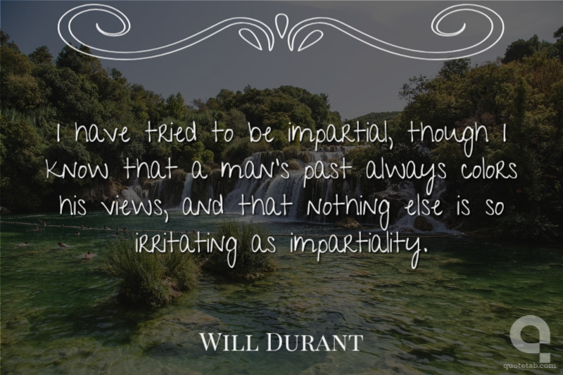 I have tried to be impartial, though I know that a man's past always colors his views, and that nothing else is so irritating as impartiality.