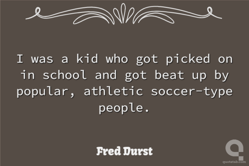 I was a kid who got picked on in school and got beat up by popular, athletic soccer-type people.