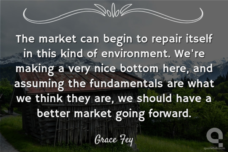 The market can begin to repair itself in this kind of environment. We're making a very nice bottom here, and assuming the fundamentals are what we think they are, we should have a better market going forward.