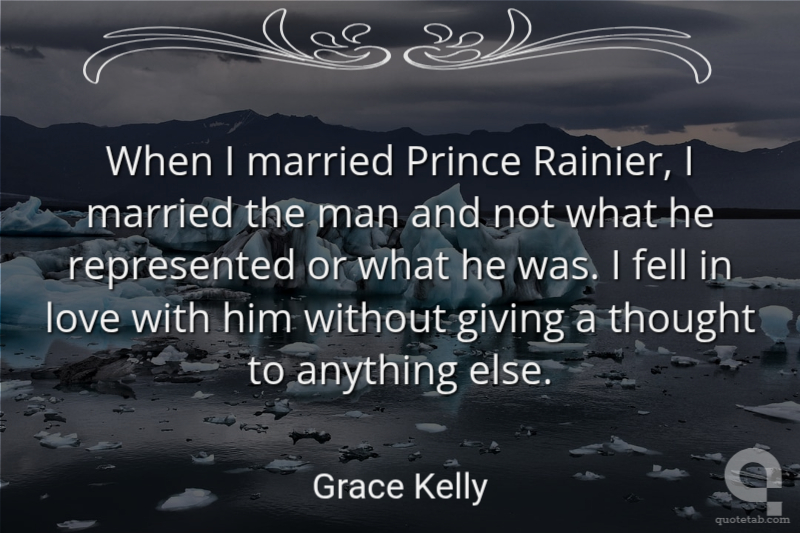 When I married Prince Rainier, I married the man and not what he represented or what he was. I fell in love with him without giving a thought to anything else.