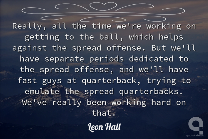 Really, all the time we're working on getting to the ball, which helps against the spread offense. But we'll have separate periods dedicated to the spread offense, and we'll have fast guys at quarterback, trying to emulate the spread quarterbacks. We've really been working hard on that.