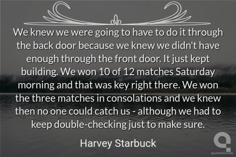 We knew we were going to have to do it through the back door because we knew we didn't have enough through the front door. It just kept building. We won 10 of 12 matches Saturday morning and that was key right there. We won the three matches in consolations and we knew then no one could catch us - although we had to keep double-checking just to make sure.