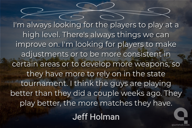 I'm always looking for the players to play at a high level. There's always things we can improve on. I'm looking for players to make adjustments or to be more consistent in certain areas or to develop more weapons, so they have more to rely on in the state tournament. I think the guys are playing better than they did a couple weeks ago. They play better, the more matches they have.