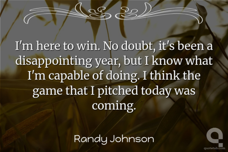 I'm here to win. No doubt, it's been a disappointing year, but I know what I'm capable of doing. I think the game that I pitched today was coming.
