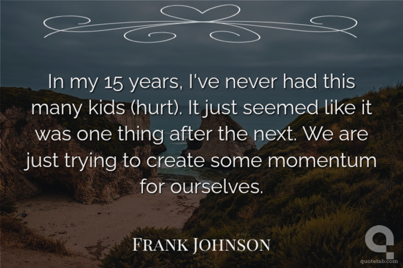 In my 15 years, I've never had this many kids (hurt). It just seemed like it was one thing after the next. We are just trying to create some momentum for ourselves.