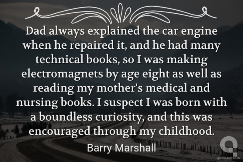 Dad always explained the car engine when he repaired it, and he had many technical books, so I was making electromagnets by age eight as well as reading my mother's medical and nursing books. I suspect I was born with a boundless curiosity, and this was encouraged through my childhood.