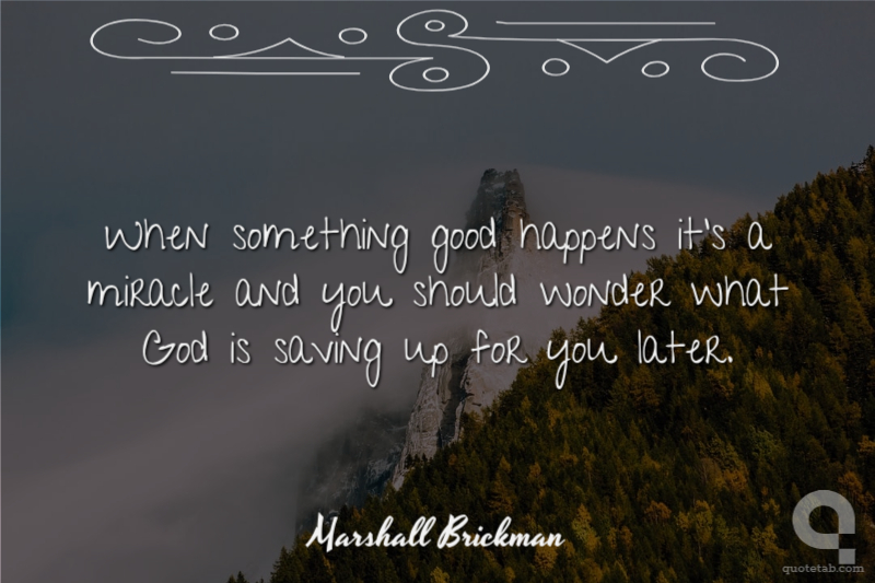 When something good happens it's a miracle and you should wonder what God is saving up for you later.