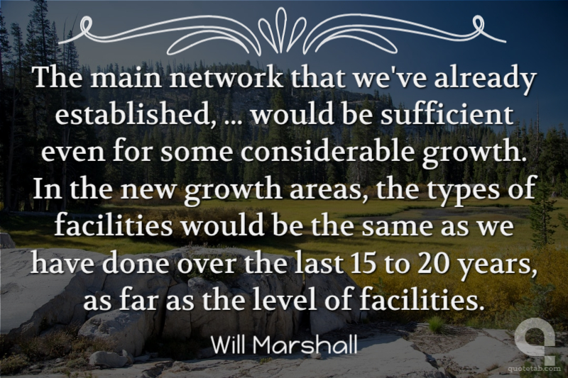 The main network that we've already established, ... would be sufficient even for some considerable growth. In the new growth areas, the types of facilities would be the same as we have done over the last 15 to 20 years, as far as the level of facilities.