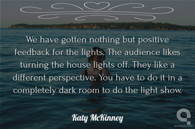 We have gotten nothing but positive feedback for the lights. The audience likes turning the house lights off. They like a different perspective. You have to do it in a completely dark room to do the light show.