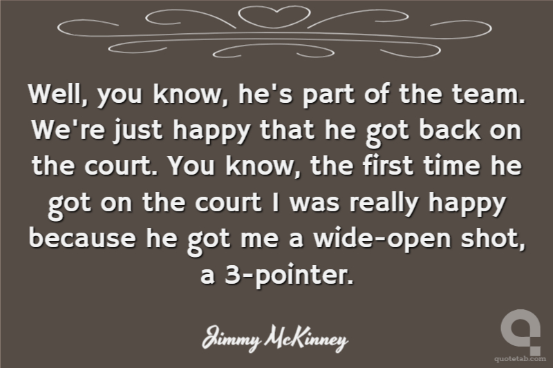Well, you know, he's part of the team. We're just happy that he got back on the court. You know, the first time he got on the court I was really happy because he got me a wide-open shot, a 3-pointer.
