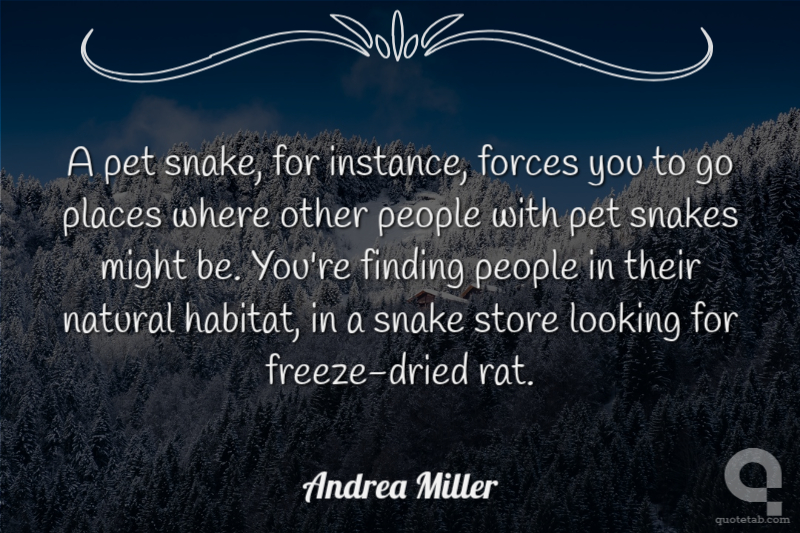A pet snake, for instance, forces you to go places where other people with pet snakes might be. You're finding people in their natural habitat, in a snake store looking for freeze-dried rat.
