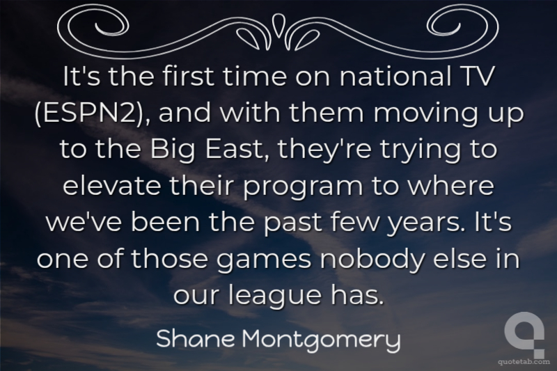 It's the first time on national TV (ESPN2), and with them moving up to the Big East, they're trying to elevate their program to where we've been the past few years. It's one of those games nobody else in our league has.