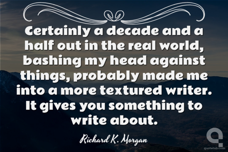 Certainly a decade and a half out in the real world, bashing my head against things, probably made me into a more textured writer. It gives you something to write about.