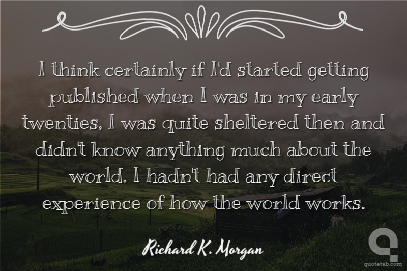 I think certainly if I'd started getting published when I was in my early twenties, I was quite sheltered then and didn't know anything much about the world. I hadn't had any direct experience of how the world works.