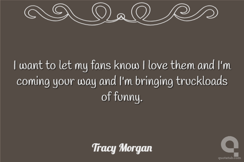 I want to let my fans know I love them and I'm coming your way and I'm bringing truckloads of funny.