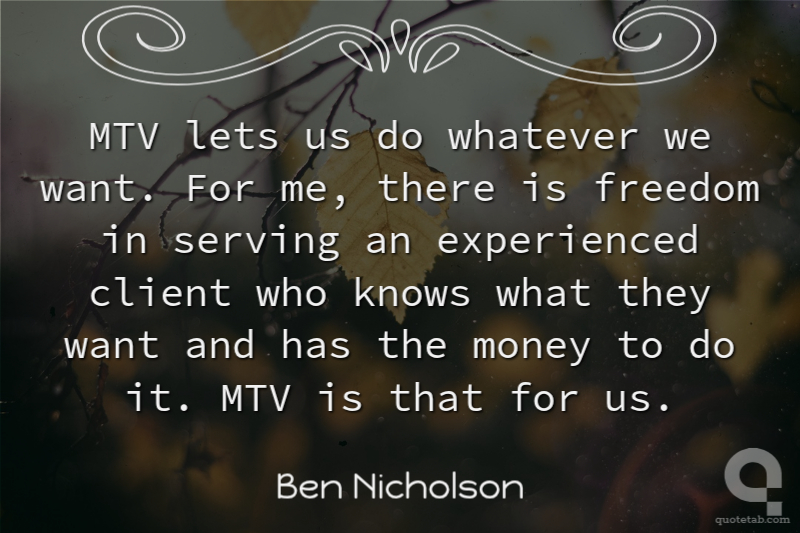 MTV lets us do whatever we want. For me, there is freedom in serving an experienced client who knows what they want and has the money to do it. MTV is that for us.
