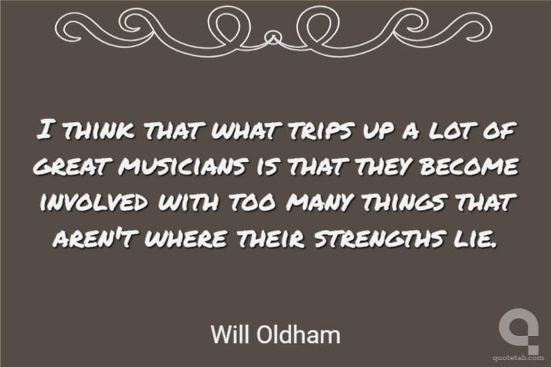 I think that what trips up a lot of great musicians is that they become involved with too many things that aren't where their strengths lie.