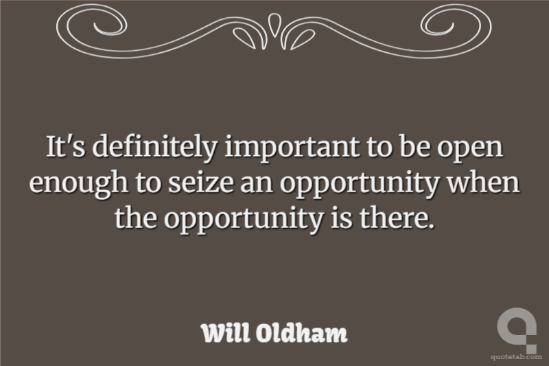 It's definitely important to be open enough to seize an opportunity when the opportunity is there.