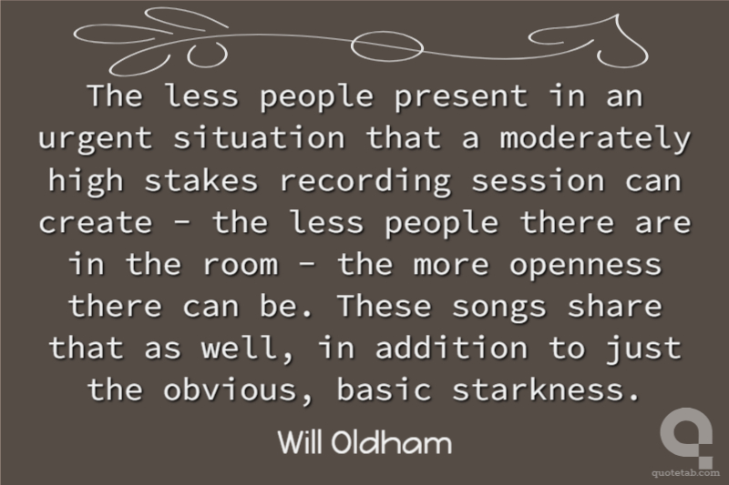 The less people present in an urgent situation that a moderately high stakes recording session can create - the less people there are in the room - the more openness there can be. These songs share that as well, in addition to just the obvious, basic starkness.