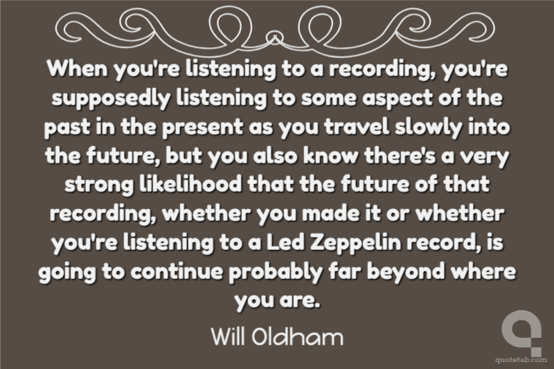When you're listening to a recording, you're supposedly listening to some aspect of the past in the present as you travel slowly into the future, but you also know there's a very strong likelihood that the future of that recording, whether you made it or whether you're listening to a Led Zeppelin record, is going to continue probably far beyond where you are.
