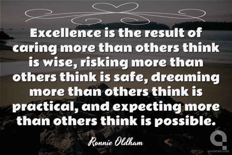 Excellence is the result of caring more than others think is wise, risking more than others think is safe, dreaming more than others think is practical, and expecting more than others think is possible.