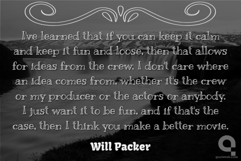 I've learned that if you can keep it calm and keep it fun and loose, then that allows for ideas from the crew. I don't care where an idea comes from, whether it's the crew or my producer or the actors or anybody. I just want it to be fun, and if that's the case, then I think you make a better movie.