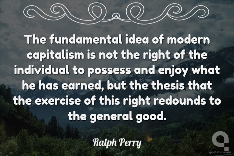 The fundamental idea of modern capitalism is not the right of the individual to possess and enjoy what he has earned, but the thesis that the exercise of this right redounds to the general good.