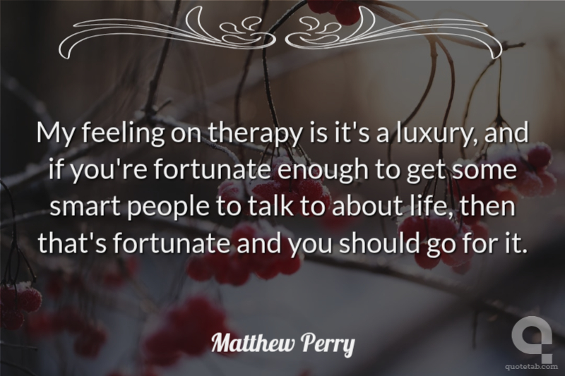 My feeling on therapy is it's a luxury, and if you're fortunate enough to get some smart people to talk to about life, then that's fortunate and you should go for it.