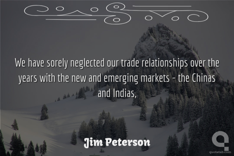 We have sorely neglected our trade relationships over the years with the new and emerging markets - the Chinas and Indias,
