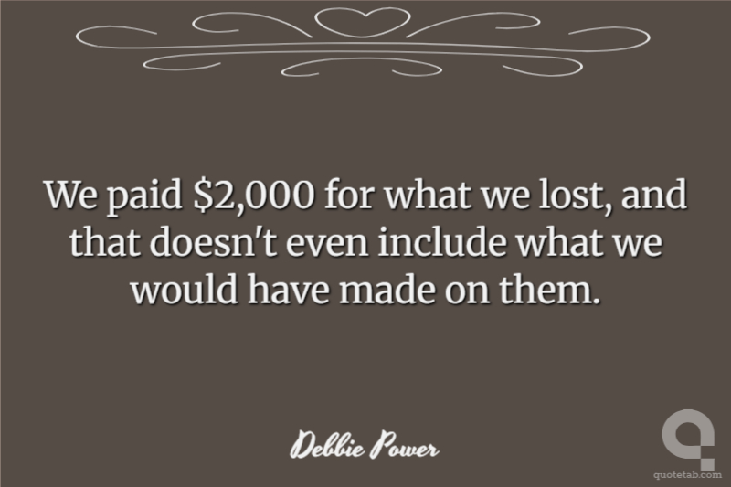 We paid $2,000 for what we lost, and that doesn't even include what we would have made on them.