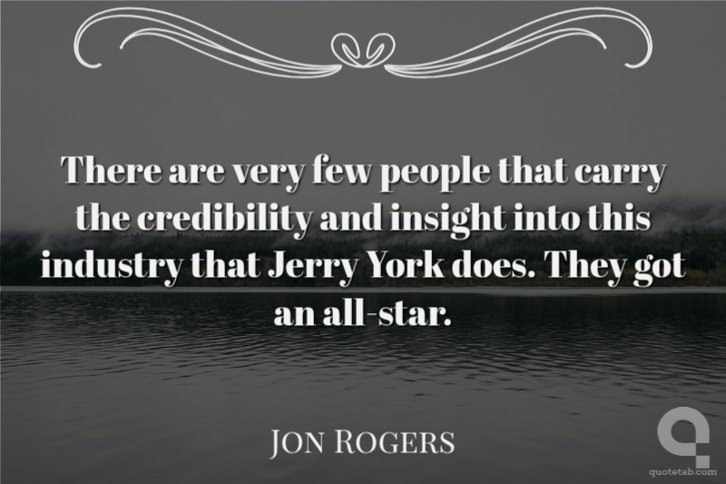 There are very few people that carry the credibility and insight into this industry that Jerry York does. They got an all-star.