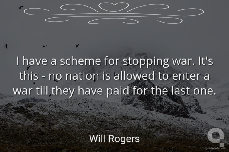 I have a scheme for stopping war. It's this - no nation is allowed to enter a war till they have paid for the last one.