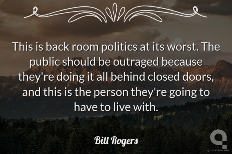 This is back room politics at its worst. The public should be outraged because they're doing it all behind closed doors, and this is the person they're going to have to live with.