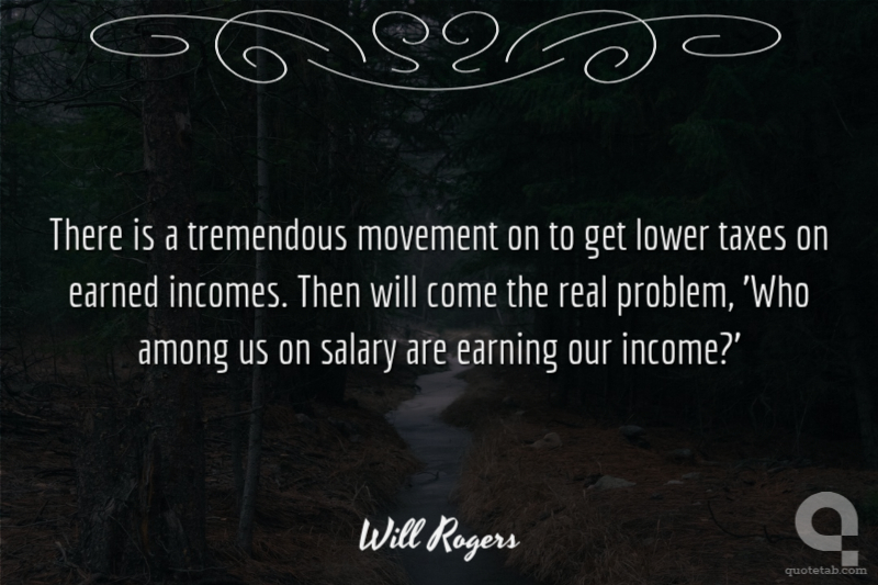 There is a tremendous movement on to get lower taxes on earned incomes. Then will come the real problem, 'Who among us on salary are earning our income?'