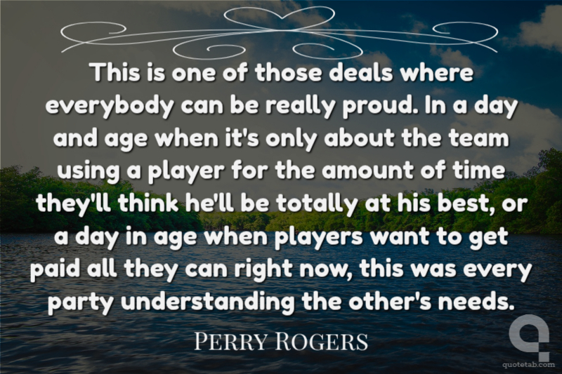 This is one of those deals where everybody can be really proud. In a day and age when it's only about the team using a player for the amount of time they'll think he'll be totally at his best, or a day in age when players want to get paid all they can right now, this was every party understanding the other's needs.