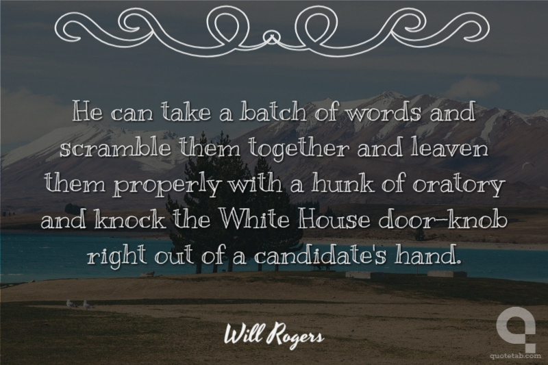 He can take a batch of words and scramble them together and leaven them properly with a hunk of oratory and knock the White House door-knob right out of a candidate's hand.