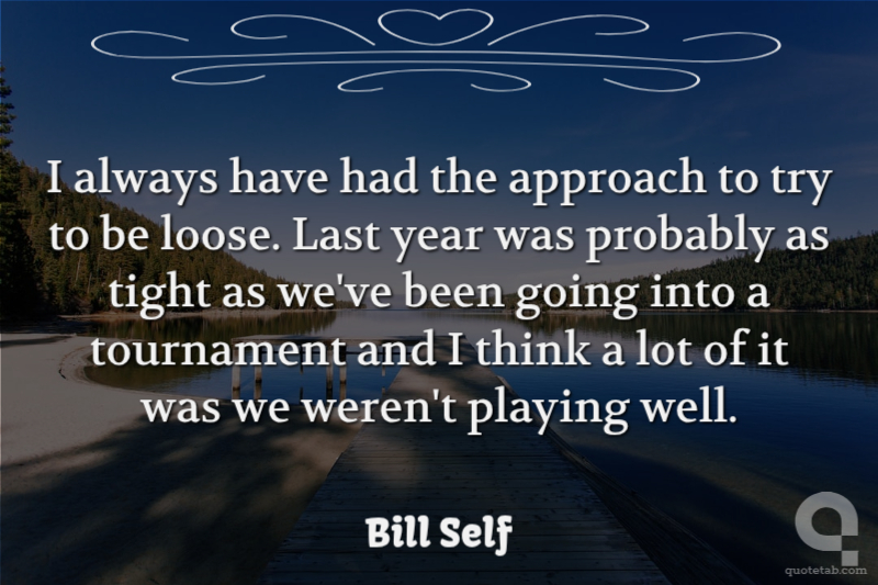 I always have had the approach to try to be loose. Last year was probably as tight as we've been going into a tournament and I think a lot of it was we weren't playing well.