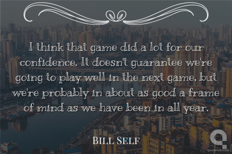 I think that game did a lot for our confidence. It doesn't guarantee we're going to play well in the next game, but we're probably in about as good a frame of mind as we have been in all year.