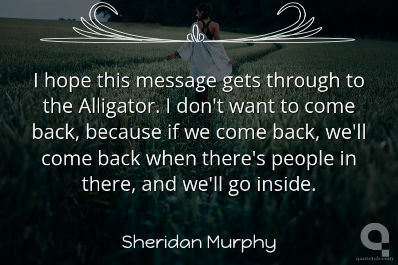 I hope this message gets through to the Alligator. I don't want to come back, because if we come back, we'll come back when there's people in there, and we'll go inside.