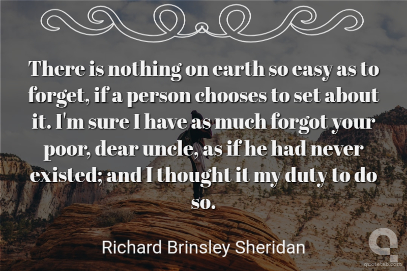 There is nothing on earth so easy as to forget, if a person chooses to set about it. I'm sure I have as much forgot your poor, dear uncle, as if he had never existed; and I thought it my duty to do so.